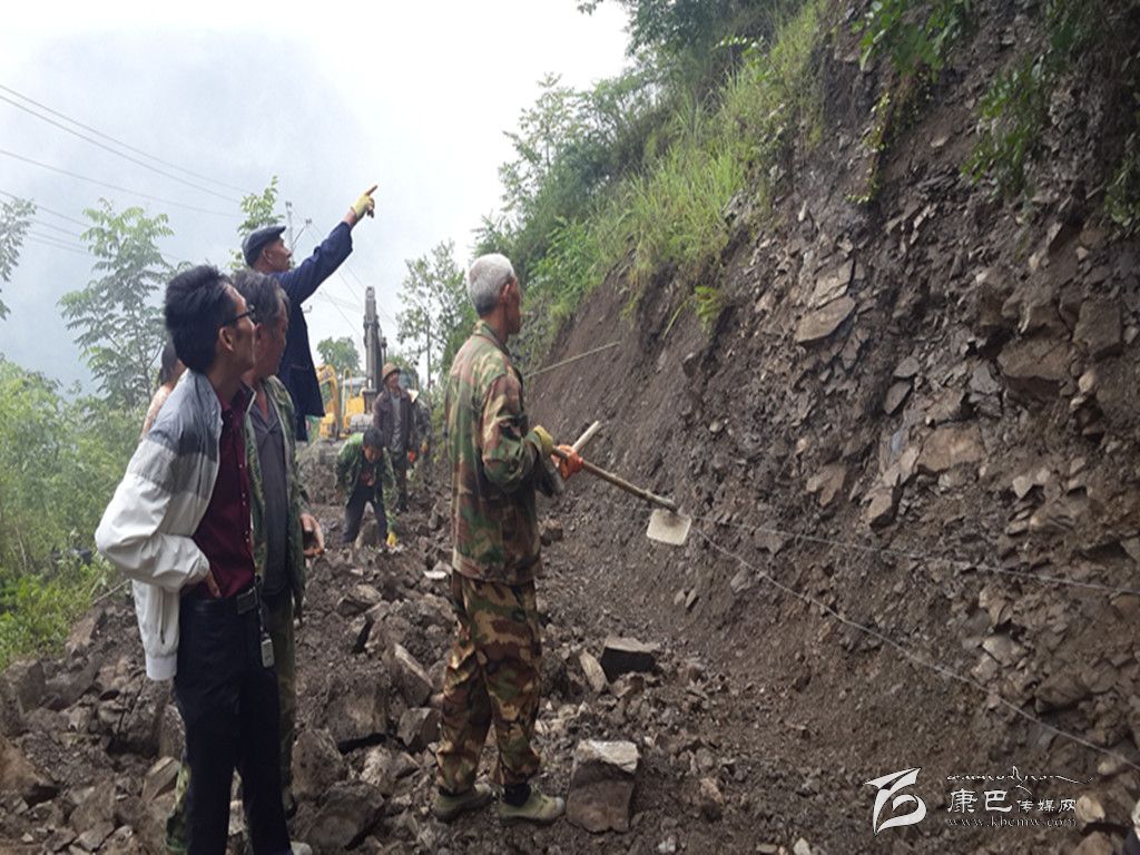 瀘定縣弱村無職黨員義務投工投勞搶修道路。