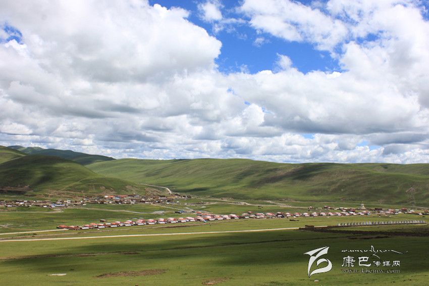 路好,車就快,比預計用的時間少。一條剛修好的通村公路立馬映入眼簾,路、樹、藏房、牦牛構成了一幅美麗的鄉村風景畫。