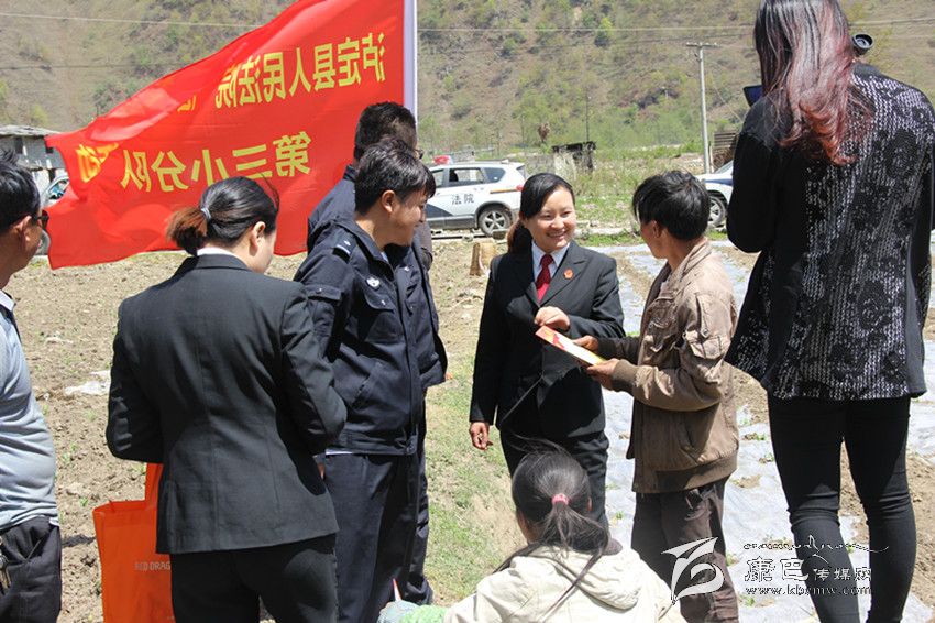在法制宣傳進鄉村活動中,瀘定縣法院始終堅持圍繞服務中心大局,把矛盾糾紛隱患多的移民村和群眾觀念相對落后的貧困村作為重點對象。利用農閑季節、重大節慶,采取經典案例、法制講座和發放雙語宣傳手冊等群眾喜聞樂見的形式,積極開展送法下鄉、以案說法和法律咨詢服務,不斷提高群眾學法、守法、用法意識。
