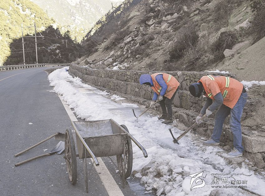 本網訊(孔邑文/圖)近日,世紀寒潮來襲,我州多地迎來暴雪天氣。為切實保障人民群眾安全、便捷出行,稻城縣公路局扎實做好春運期間管養路段保通保暢工作。圖為養路工人正在對積雪、結冰路段進行及時處理,以確保車輛正常通行。​