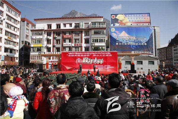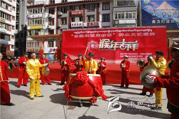 2月9日(正月初二)中午12點,“金猴納福鬧新春”軍警民群眾文藝匯演在康定情歌廣場如期上演。精采的文藝節目吸引了成千上萬市民的目光,為節日的情歌城增添了幾分喜氣。