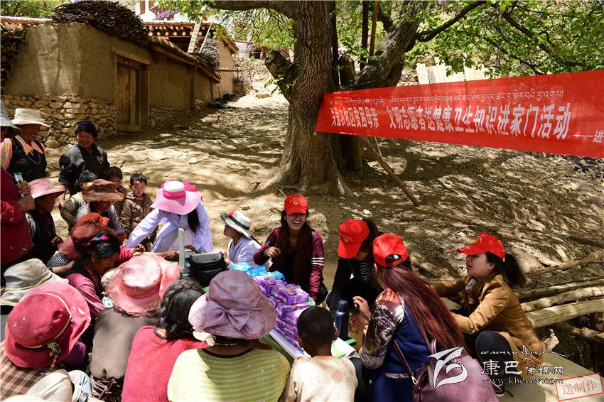 中心絨鄉安里頂村的四郎志瑪剛剛給地里的農作物澆水回來,就發現村里來了一群戴著小紅帽的“不速之客”,他們周圍聚集著提前趕來的鄉親。兩位穿著白大褂的“小紅帽”正在為排著長隊的鄉親們免費體檢,另外還有兩位戴“小紅帽”的女性志愿者召集婦女村民為她們講解健康衛生知識,演示女性衛生用品的使用方法。