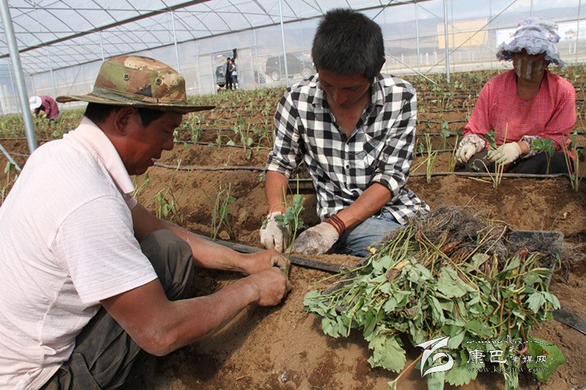 本網訊(葉強平 文/圖)5月16日,在海拔4000多米的理塘縣濯桑鄉漢戈村圣地農莊大棚里,20多名農場工人正在壟上栽植草莓苗。