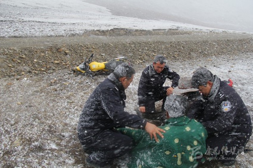 時值寒冬,甘孜雪域高原上大雪紛飛,石渠縣公安局民警仍然在雪中執勤,救助受傷群眾,為了群眾能過好春節,他們被凍得臉色發紫。