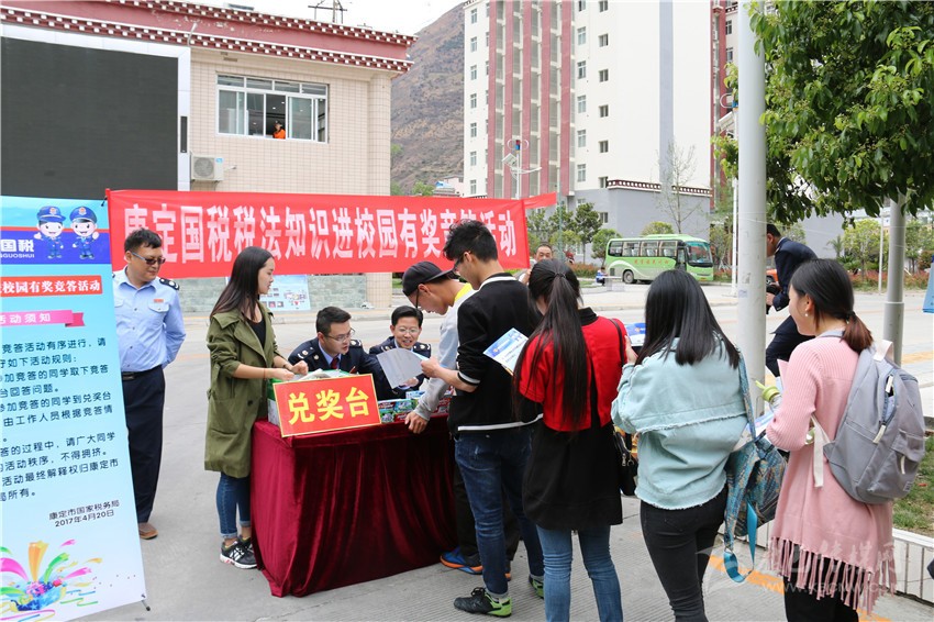 本網訊(吳海波 記者 張嗥)購物時商家不給發票,可以打哪個電話進行投訴?增值稅納稅人分為哪幾類?”這一系列與生活息息相關的稅法知識有獎答題,引來了眾多四川民族學院同學的熱情參與。4月20 日,康定市稅法宣傳月活動持續升溫,稅法宣傳首次走進高等院校。