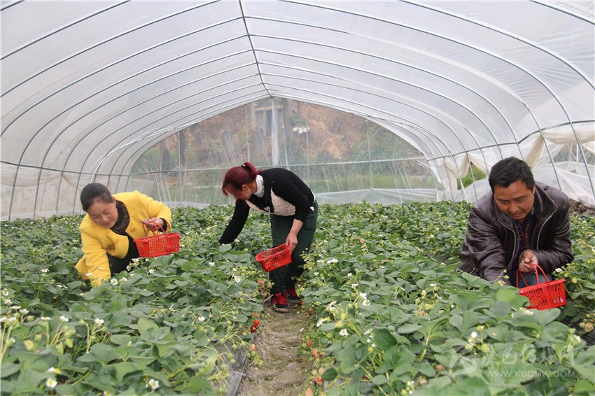 興隆鎮沈村村民在自家草莓大棚里采摘草莓。