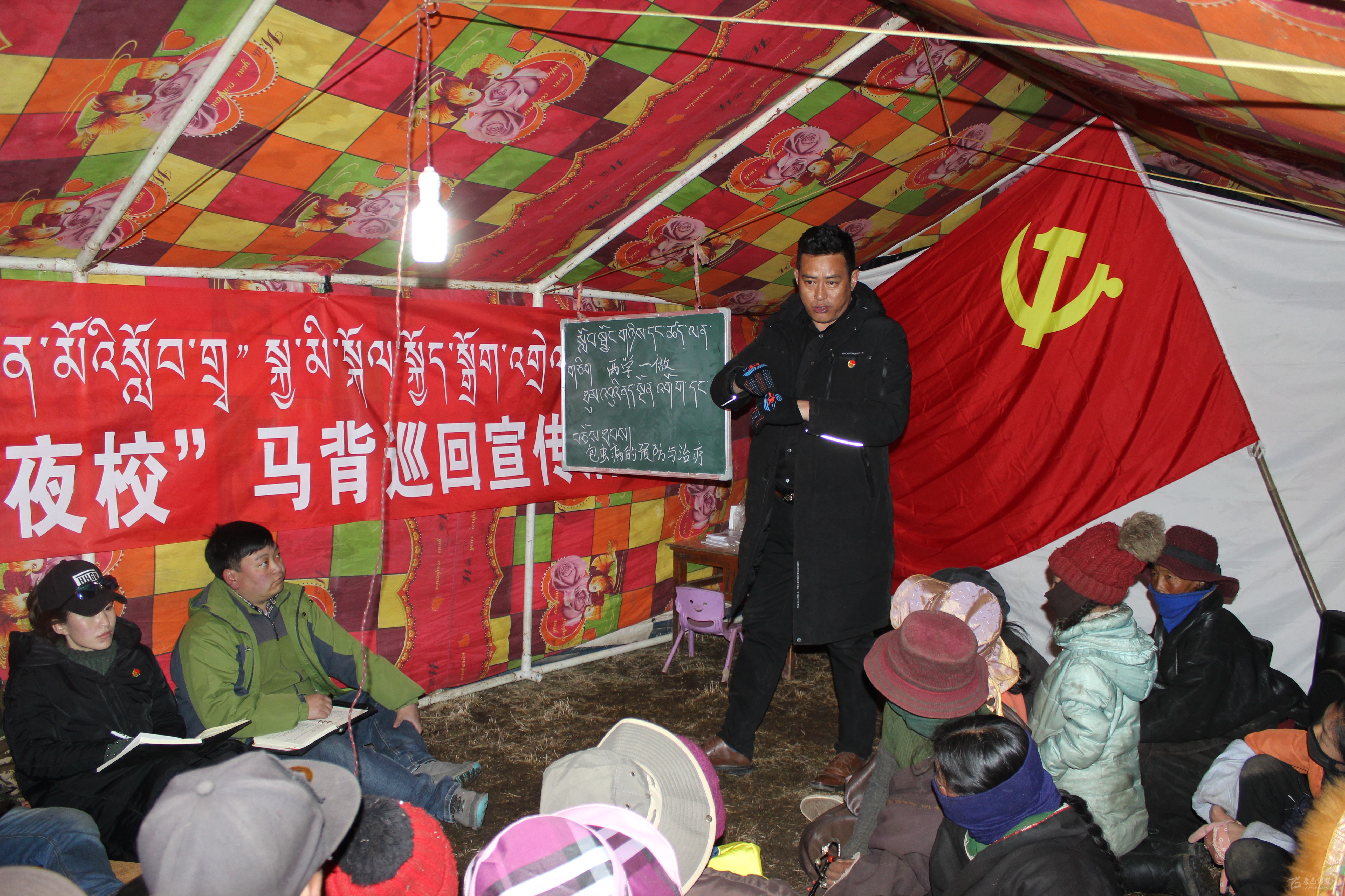 宣講隊白天在海拔近5000米的蟲草采挖點宣講,晚上又組織蟲草采挖點的群眾開辦 “農牧民帳篷夜校”, 將“農牧民帳篷夜校”作為“強基層、強基礎、聚人心、聚才智”的重要舉措,采用藏漢雙語宣講、現身說法、播放教育片等方式,向農牧民群眾宣傳基層黨建、精準扶貧、包蟲病綜合防治、安全生產等,切實把“農牧民帳篷夜校”辦成農牧民快速提升能力的平臺,將課堂帶進帳篷,將知識帶上雪山。同時,該鎮還充分利用現代信息手段,整合有效資源,建立色須鎮“農牧民帳篷夜校”微信課堂。按照“以點帶面、以面蓋片”的傳播方式,向廣大農牧民群眾及時宣講各項惠民惠農政策。