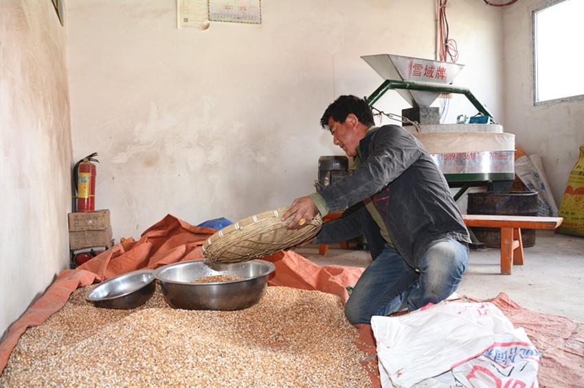事實(shí)上,小作坊的準(zhǔn)確名稱是仁果下村電磨坊合作社,屬于村里的集體經(jīng)濟(jì),廠房的建設(shè)、機(jī)器的購(gòu)買都來(lái)源于扶貧專項(xiàng)資金。建成后,合作社提供崗位,讓村里的貧困戶來(lái)操作運(yùn)營(yíng)。于是,洛桑降措成為了這里的“主人”。
