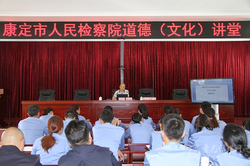 為推進檢察文化與公民道德建設,深入學習九龍縣人民檢察院原黨組書記、檢察長蘇知斌同志的先進事跡,扎實開展政法機關“講政治、提能力、鑄忠魂”主題教育活動,8月2日,康定市人民檢察院舉辦了道德(文化)講堂活動。我州學者韓曉紅圍繞康巴文化和社會責任等,作了題為“文化與社會安全”的專題講座。 (胡海佳 攝影報道)