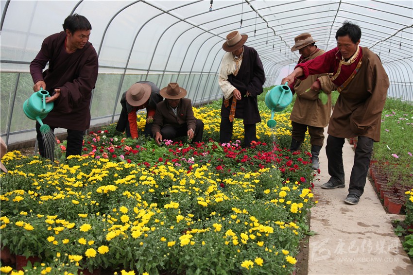 “走,我帶你到貧困戶色郎巴姆家坐坐,她家離這兒只有幾分鐘的路程。”當記者來到色郎巴姆家時,54歲的她正在一幢破舊的藏房院子里照料坐在輪椅上曬太陽的癱瘓丈夫。她說:“我丈夫在15年前因病癱瘓,本來家里就很窮,丈夫一倒下,土地都要靠村干部和鄰居幫忙種和收。幸好國家的政策好,要不然這日子真就過不下去了。我家3口人,每月能領到540元的低保金,加上各項惠民資金和丈夫的一級殘疾補助,一年有7000多元。上個月村上給我家分了3000元,說是村花卉種植合作社給的分紅款。我家在村合作社投了300元的股份,沒想到一下就換回這么多。”白瑪澤仁當即補充道:“再過十幾天,第二批花又要上市了,到時你家恐怕還有兩三千;再過一個月,你家就要下山住好房子了;今天上午雀兒山隧道建成通車了……”色郎巴姆聽罷之后高高地豎起了雙手大拇指,嘴里不停地說道:“共產黨亞莫熱!人民政府亞莫熱!”