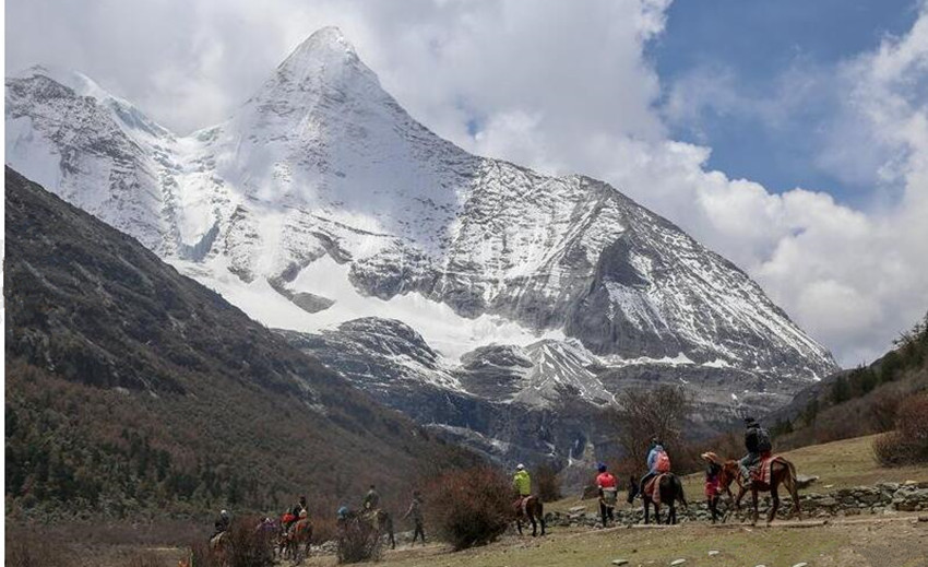 今年“五一”小長假期間,陸續有游客來到亞丁游覽。(朱虹 攝)