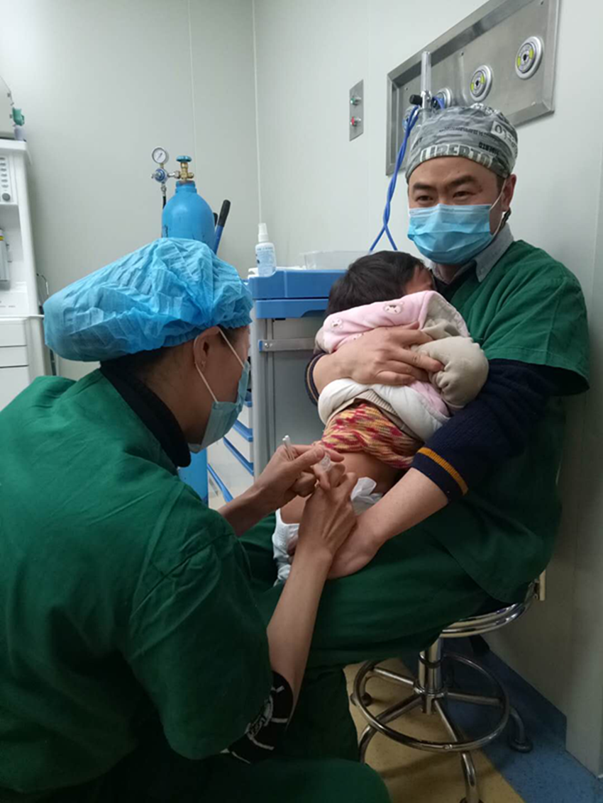 面對高海拔的情況和患兒的病況,陳勇醫生施展全身解數,充分利豐富的經驗和精湛的技術,歷時1小時,順利完成了麻醉手術,術中患兒生命體征平穩。