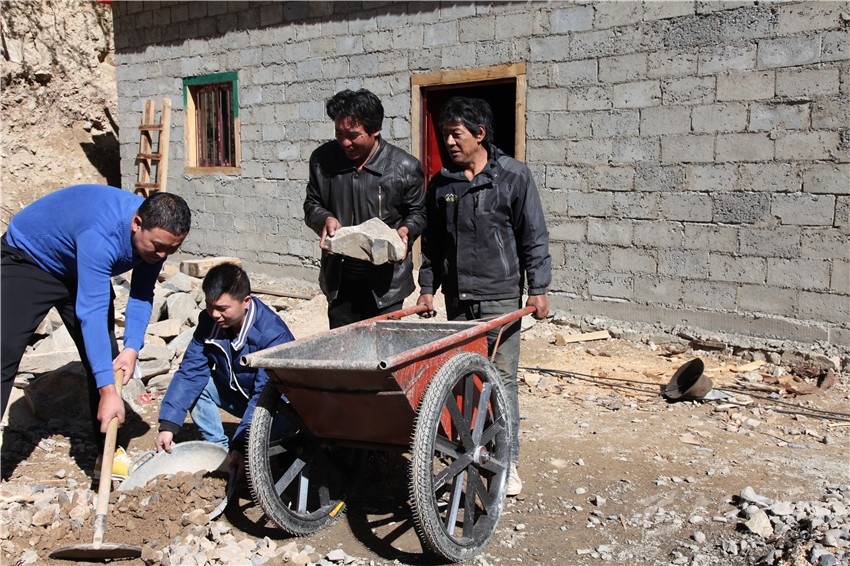 俗話說,一方水土養一方人,當一方水土不能養活一方人時,移民搬遷就成了最好選擇。這個行動遲緩的中年男子名叫洛絨,今年48歲。他眼前的這幢建筑面積100平方米的磚混結構單層房子,盡管室內地面還沒灌注水泥,房內還沒裝修,但他對即將入住新房的那份喜悅一覽無余:“你看,這房子的前面是河、后面是山,太陽一出來就能照著,住起來肯定舒服;這三間房子就有四個大窗戶,光線照得進來,里面肯定亮堂;這一進門就是客廳,兩邊各有一套大大的房間,裝修好后只要把家具家電一擺上,肯定漂亮;……”正當他說得津津有味時,鄉上負責易地扶貧搬遷干部馬煜和包村干部鄭剛突然出現了他的眼前,他滿是感激地說:“其實,我知道你們都很忙,用不著隔三差五過來幫我,我保證十天之內就把地面填平。況且再過幾天,我愛人就從山上挖蟲草回來了。有她打下手,兩個月內我們一家人肯定就能住進新房子啦!”