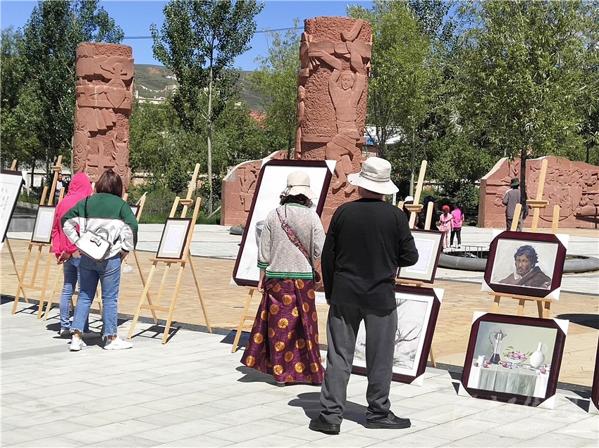 文藝展得到了廣大藝術(shù)愛好者的積極響應(yīng)、參與和支持,共征集到精美作品189件展出,其中書法作品60件、繪畫作品69件、唐卡作品60件。作品內(nèi)容廣泛、立意新穎、主題突出,既有藝術(shù)性又有紀實性,富有感染力和表現(xiàn)力。