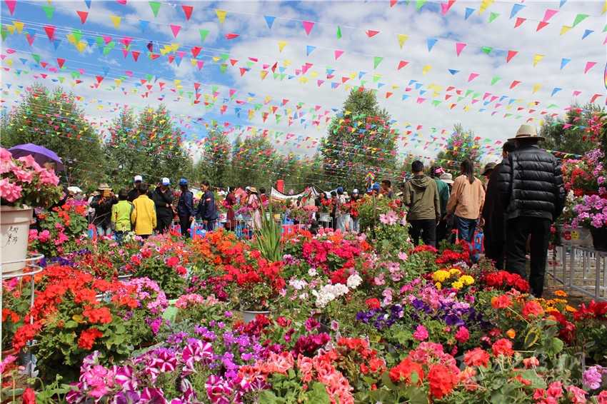 當天,身著色彩艷麗藏族服飾的表演者徜徉在花海中,與群眾游客聚集在一起,賞美景、品華服,傳承藏族禮儀文化、傳播藏民族服飾文化,沉浸在喜慶氛圍中。