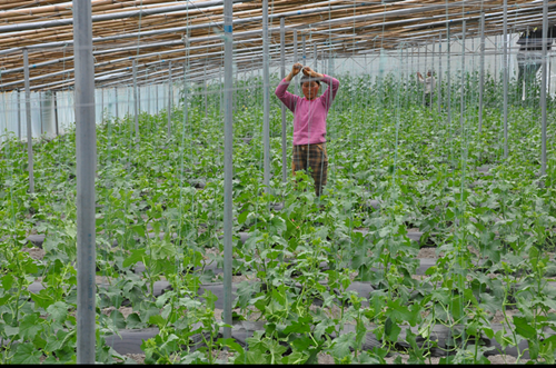 為進一步做大做強蔬菜產業,瀘定縣穩步實施《高半山特色生態農業發展規劃》,優質魔芋、高產核桃、特色水果播面分別達11000畝、9000畝、7120畝;建成現代農業產業基地8.65萬畝、高產高效創建基地2.4萬畝,蔬菜種植面積達2.5萬畝,蔬菜基地灌溉保證率達90%,蔬菜良種、基地綠色防控覆蓋率均達100%。圖為德威鄉磨子溝村村民在蔬菜大棚內忙碌。(尼胡克布 攝影報道)