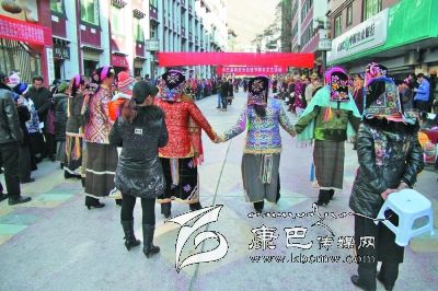 元旦前夕,丹巴縣為豐富城鄉(xiāng)居民的文化生活,在縣城步行街開展歡慶元旦佳節(jié)群眾文藝活動(dòng),丹巴縣嘉絨鍋莊協(xié)會(huì)成員和廣大群眾共同跳起歡樂的鍋莊,唱響了文化惠民的主旋律。圖為活動(dòng)現(xiàn)場(chǎng)。 孟剛 攝影報(bào)道