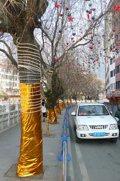 本網訊(記者 周華) 攝在馬年春節即將來臨之際,一批喜慶的新年裝飾亮相康定街頭,為節日的康定城增添了幾分喜氣。據康定縣市政管理局有關人士介紹,每年春節,康定都要采取措施營造節日氛圍。今年的節日氛圍營造本著節儉、喜慶、熱烈的原則,在色調上突出傳統的紅色,融入了福、春、馬年生肖等元素,既有傳統的特點,又有民族特色。據了解,這些節日裝飾主要分布在城市街區、廣場及繁華地段。在有城市行道樹的街道,則采用裝飾與燈光結合的方式,突出城市的動感,使夜晚的康定城更加浪漫而富有生機。