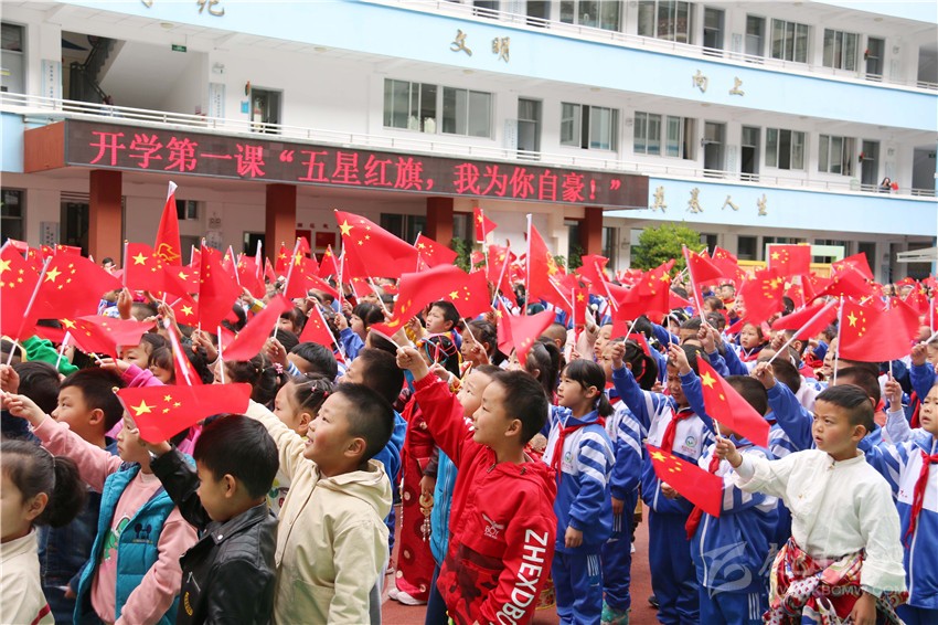 開學典禮結束后,各年級開學第一課“五星紅旗,我為你自豪”陸續進行。