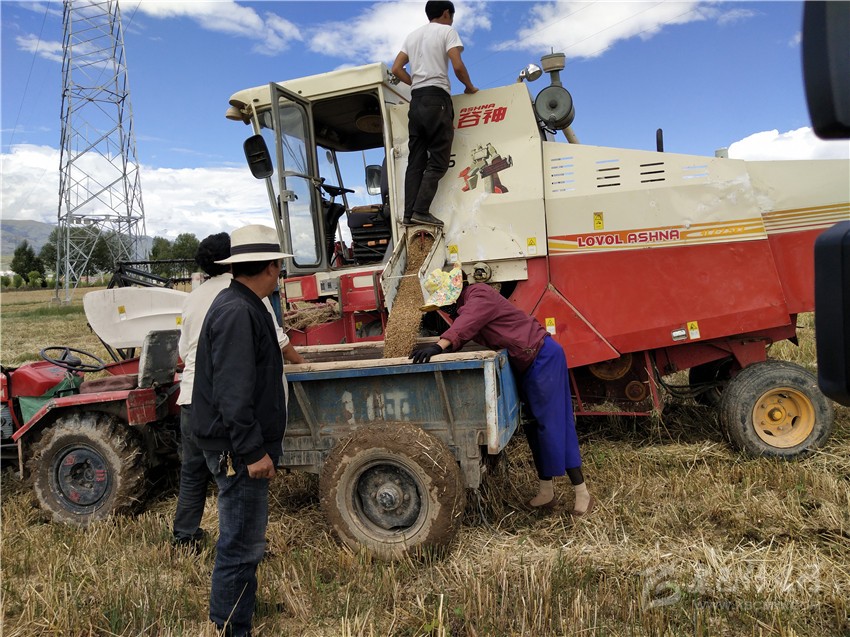本網訊 甘孜縣因在全州青稞產量中占比較高,素有康北糧倉的美譽。當前,當地迎來了收獲喜季節,田野里那一片金黃色的青稞,在收割機的轟鳴聲跳躍著,把最飽滿的身姿留給了辛勤耕耘的人們。