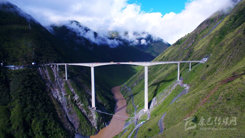 “兩河口特大橋目前是我國藏區第一高墩公路橋,其主跨長度及段高在國內同類型橋梁中位居前列。這個藏區第一高墩要4年之后才會突破,4年之后同為藏區的阿壩州的雙江口特大橋將開建,其最高橋墩為176米,比兩河口特大橋最高橋墩高4米?!备抵f。