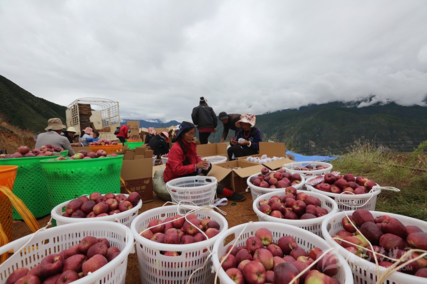 鄉城蘋果以色澤艷麗、香味濃郁、便于儲存而具有很好的市場前景。鄉城縣德園經濟林果公司負責人周軍告訴筆者,共種植鄉城蘋果4000畝,今年有600畝掛果,產量達60萬斤、產值達180萬元;再過3年,4000多畝蘋果將進入盛產期,年產量將達到320萬斤。原生態的鄉城“糖心蘋果”早已自帶“名片”,引來成都、重慶、深圳、昆明等地的企業上門預定,“鄉城蘋果俏得很,不愁銷路”。
