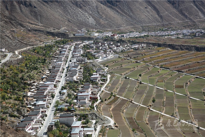 作為處于高山峽谷間的得榮縣鄉村,村民大多生活在懸崖峭壁上,或地質災害嚴重的地區,生存條件極差,為了徹底斬除窮根,縣委、縣政府把開發的目光投向了地勢相對平坦的因都壩。11月10日,記者再訪因都壩。初冬的因都壩陽光燦爛,溫暖如春。一棟棟民居、一層層梯田橫臥在青山綠水間,蔚為壯觀。農閑季節,村民們愜意地坐在自家庭院的亭子里,喝著酥油茶、品嘗著藏橘、梨子、蘋果和核桃。村道兩旁的藏橘碩果滿枝頭,寬敞的街道、靚麗的民居,一幅壯美的富春山居圖在金沙江畔徐徐展開。
