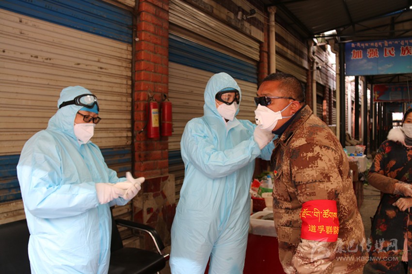 離超市150米處,是道孚農(nóng)貿(mào)市場,市場里很多攤位都空著。記者直往里走,卻被兩個穿著防護(hù)服的醫(yī)務(wù)人員攔住了:“同志,測了體溫才能進(jìn)去購物。”隨即,一個醫(yī)務(wù)人員為記者測量體溫,一個人員在登記表上鄭重地畫上一筆。