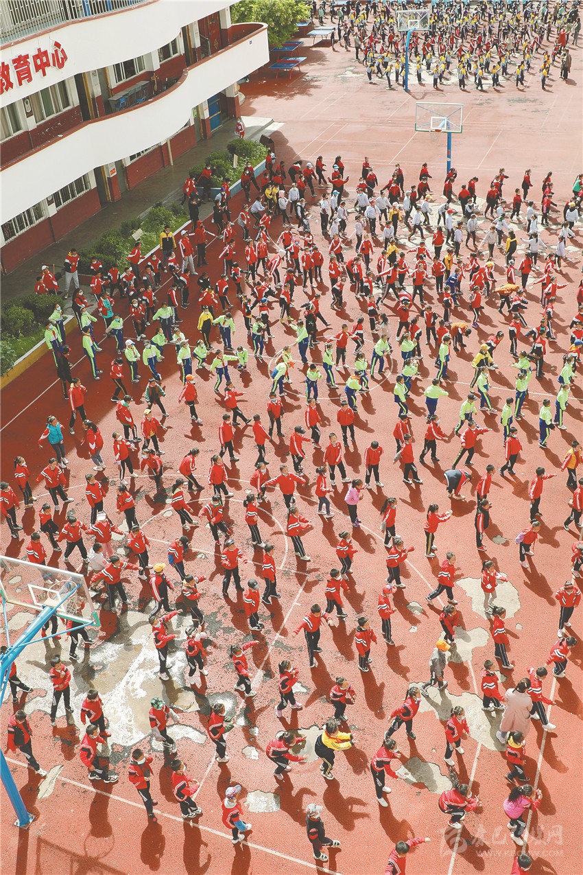 白玉縣一完小學生做課間操。
