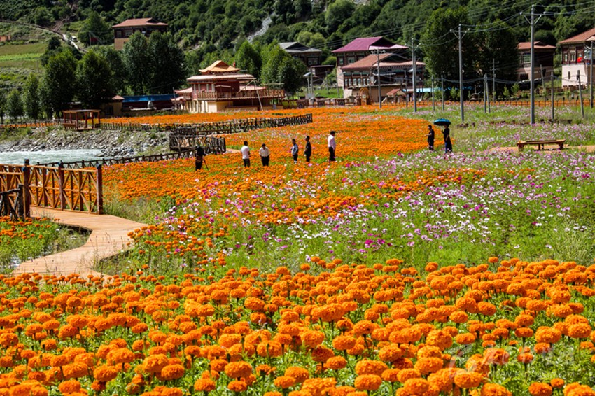 白玉縣麻絨鄉(xiāng)德來村萬壽菊種植基地給當(dāng)?shù)卮迕駧碇赂幌M?本網(wǎng)資料庫圖