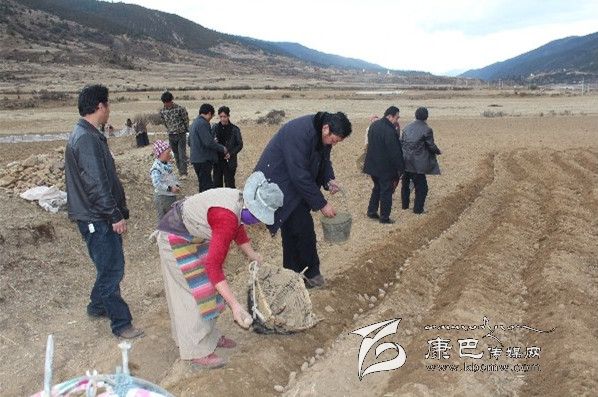 在格中村的田間地頭,到處是一片忙碌的春播景象。雷建平走進斯朗卓瑪的田間,在農業技術人員的指導下,從選種開始學起,病害的種丟掉、大的切成幾瓣,撒點底肥,均勻丟種,把蓋種的土弄成一個梯形的壟。雷建平一邊勞動,一邊和斯朗卓瑪攀談,去年土豆收成怎樣?有沒有增加收入?今年春耕生產有哪些實際困難?雷建平又接著向她推薦用地膜種土豆的好處,蓋不蓋膜大不一樣,1畝要多收500-1000公斤,加上上市早,價格也要貴一些,可以到臨近的甲洼鄉江達村去學習經驗。