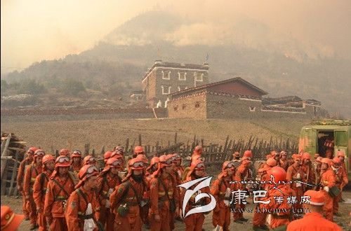 爐霍專業森林撲火隊隊長阿代介紹說:“接到命令后,我們立刻組織34名撲火隊員,緊急出動四輛森林消防車和一輛行動車趕赴火場。因火場山高路陡,撲火器材只能用人工的方式運送到一線,70公斤的器材兩個人扛,15斤一盤的水袋一個人一次背兩三盤,有的地方需要涉過刺骨冰冷的河水到達一線,許多隊員都出現了體力透支的現象,但沒有一個人叫苦喊累。”