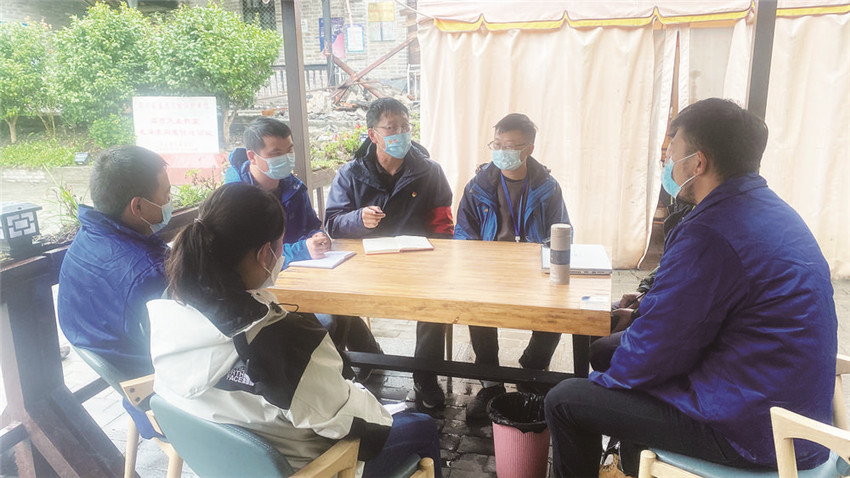 雅江、康定大隊(duì)的消防員將20多頂帳篷完好無損地送至磨崗嶺村,用時(shí)4個(gè)多小時(shí)。其他的應(yīng)急救援隊(duì)伍,也幾乎同時(shí)抵達(dá),大家分工合作,開始在村子的安全地帶搭建帳篷。村子里的一部分村民早早在路邊支起兩口鍋,一口鍋燒滿熱水,另一口鍋煮著米粥。另一部分村民則找到消防員,希望他們?nèi)タ逅姆课堇飺尵缺谎诼竦纳钗镔Y和財(cái)產(chǎn)。