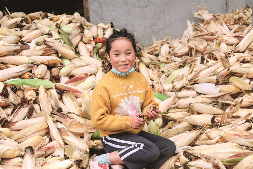 玉米堆成金黃色的小山,小孩們開心體驗(yàn)著秋收帶來的喜悅。