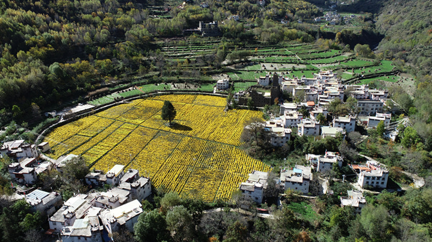 本網訊 金秋時節,在丹巴縣巴底鎮邛山村的一片田地里,當地農戶正在金絲皇菊基地里采摘菊花。35畝金絲皇菊迎風綻放,成為當地美麗的風景。今年,該村采取“公司+合作社+農戶”因地制宜種植金絲皇菊,讓群眾在家門口就業,菊花種植產業打造了綠色生態美麗鄉村,吸引了不少游客前來游玩,成為當地群眾致富增收的新路子。降初澤郎 吉靜 洛桑達瓦/文