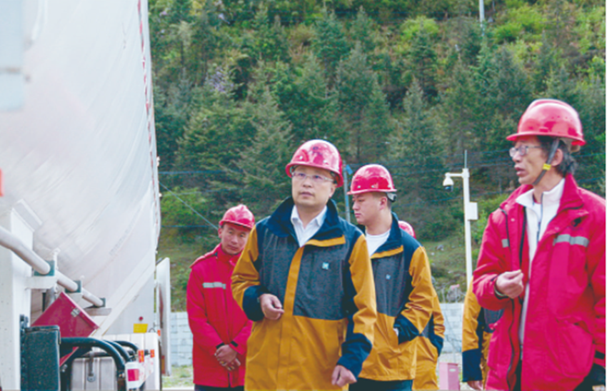 集團(tuán)黨總支書記、董事長(zhǎng)陳澤明(中)在一線調(diào)研。