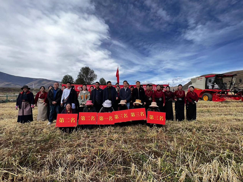 “開鐮!”10月12日上午,在寒桑村村委會主任洛絨群真的口令下,以“慶豐收 促和美”為主題的寒桑村2023年青稞收割比賽在該村多品種青稞試驗田內拉開帷幕。
