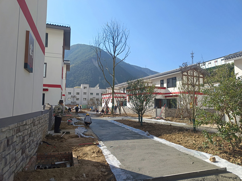 11月5日,記者走進瀘定縣德威鎮奎武村“9·5”瀘定地震災后重建集中安置點,只見一幢幢繪有“如意結”和穿斗裝飾等瀘定傳統建筑元素以及“瀘定紅”“紅飄帶”等民族特色的安置房沿大渡河畔依次排開,一條條寬敞平整的水泥硬化道路將這些風貌一致、戶型合理、結構安全的安置房屋串聯起來。幾十名工人正在安置點內忙碌,有的在鋪設路面、有的在栽種綠化樹、有的在搬運廢渣……,拿到鑰匙的部分村民正在進行室內裝修,現場一派繁忙景象。