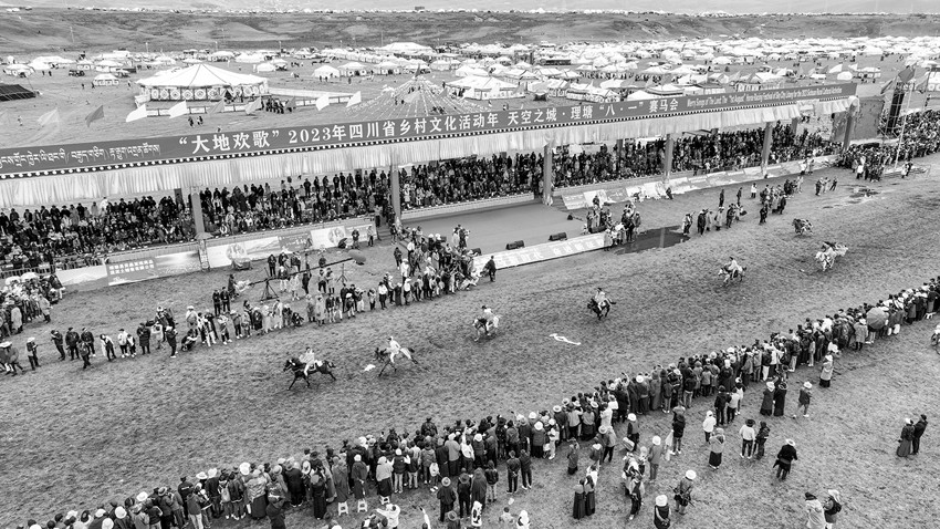 “中國藏族賽馬文化之鄉”“理塘八一傳統賽馬會”是四川涉藏州縣規模最大的賽馬會,賽馬傳統延續長達400余年。“早就聽說過馬背上的理塘,今天終于親眼所見,實在不虛此行。草原追風,策馬飛奔,蹄聲如雷,震徹山野,這是多么壯美的理塘萬馬奔騰圖啊!多想遠離城市的喧囂,策馬揚鞭,馳騁草原,豪邁瀟灑,勇往直前。以后每一年的理塘賽馬活動,我一定會帶上家人再來這里,因為理塘,可謂是心靈棲息的地方。”在“大地歡歌”2023年四川省鄉村文化活動年——天空之城·理塘“八·一”賽馬會上,來自北京的游客石磊被當地賽馬文化吸引,和朋友玩得不亦樂乎。