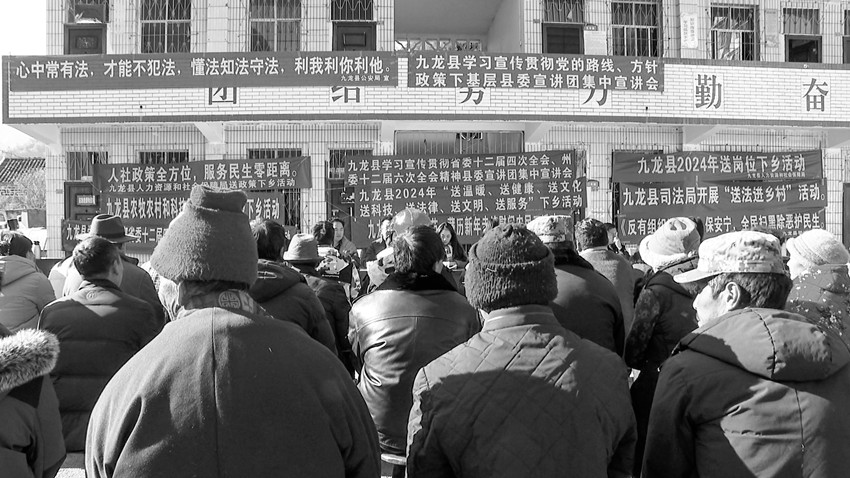 本網訊 1月12日至14日,九龍縣委宣傳部組織縣司法局、縣農牧農村和科技局、縣衛生健康局等部門,聯合開展了學習宣傳貫徹習近平新時代中國特色社會主義思想、省委十二屆四次全會精神、州委十二屆六次全會精神宣講暨“七下鄉”暖冬行動。