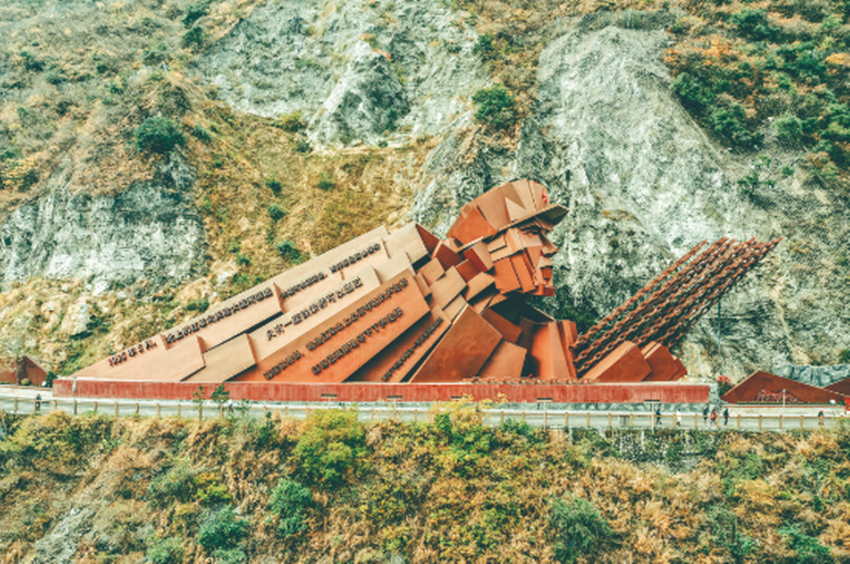 冬日的清晨,金色陽光溫情撫摸著瀘定這片紅色熱土。在勇士路,矗立在山間的巨大紅軍頭像凝望著前方,雕塑前設(shè)置的13根鐵索倚靠青山,滔滔大渡河水洶涌向前。80多年前,中央紅軍在此飛奪瀘定橋,踏上浴血征程。如今,作為長(zhǎng)征國家文化公園瀘定橋景區(qū)一期項(xiàng)目,勇士路已建成投入使用。