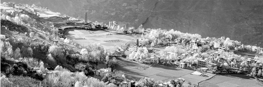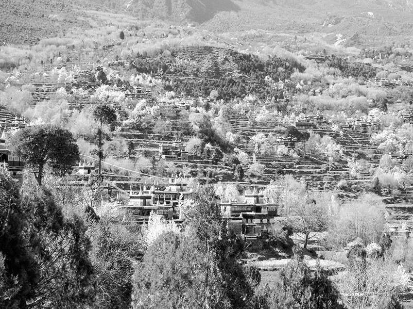 行駛在牦牛河谷,兩岸的山坡上,古樹參天,層林疊翠,仿佛打翻的調色盤,將一條溝谷渲染得猶如人間仙境,令人目不暇接美不勝收,因此獲得“天然盆景”的美譽。美麗的山水完美地詮釋了丹巴縣大力推進生態建設所取得的顯著成效。