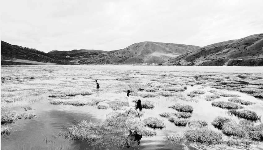 德格縣馬尼干戈鎮的珠姆省級濕地公園,水面映照著藍天白云,野花和綠草隨風輕曳,處處洋溢著生機。閑庭信步的兩只黑頸鶴,成為這里的別樣風景。 益西巴絨 攝
