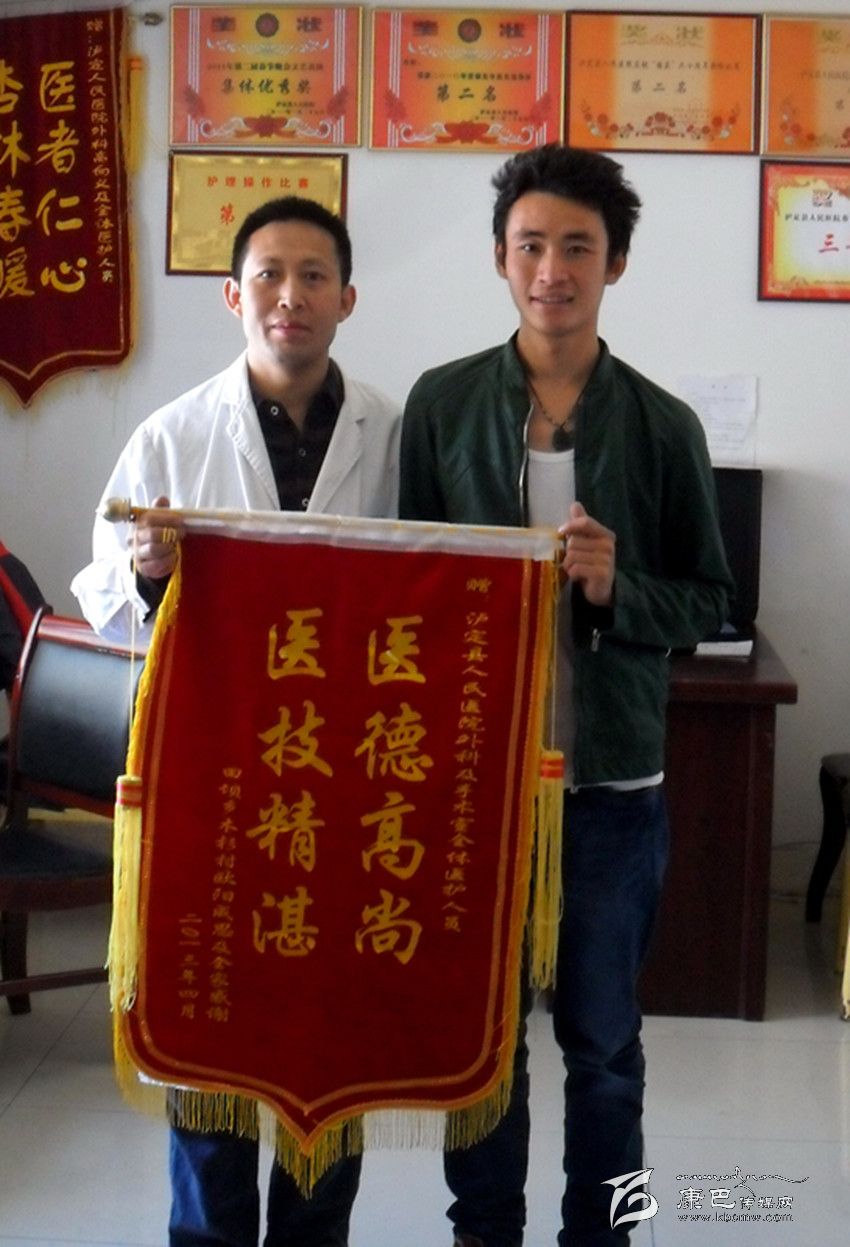 筆者懷著敬佩的心情與大家聊這些事情,值班的護士說:“類似這樣的情景在醫院經常發生。高醫生為那些關節病人置換關節手術才叫精彩,醫院經常收到錦旗,場景讓人感動。”原來幾年前高醫生通過在華西醫科大學的學習,回來后成功開展了四肢骨折內固定術120余臺次,髖關節置換術6例,這可是甘孜州所有醫院中能夠獨立成功開展全髖關節置換術的唯一醫院。最特別的是這些病人大多都是老年患者,一旦醫好,家屬都會按照老人的意愿送來錦旗。比如家住瀘定縣城區93歲陶樹森老人,2008年10月作股骨頭置換術康復得以行走;家住瀘定縣田壩鄉90歲郭安鳳老人,2013年5月行股骨打轉子骨折重建術,康復得以行走;還有家住瀘定縣烹壩鄉70歲的李有蓮老人,2013年5月行全髖置換術,康復得以行走。如果這些病人在成都醫治,不僅需要承擔高昂的醫療費用,護理費用,還要承受路途奔波的痛苦,治愈的快樂可想而知。