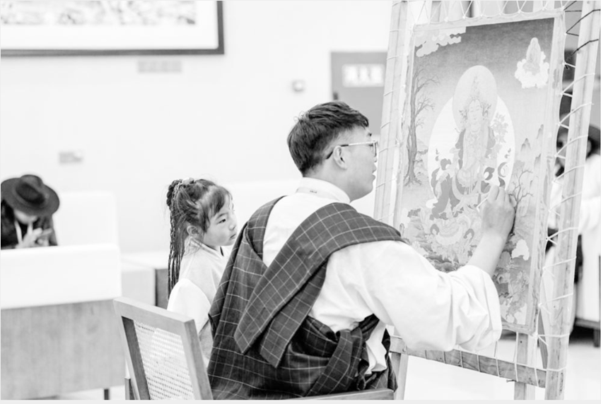 “絲路甘孜·龍燈牧場”景區里體驗畫唐卡。