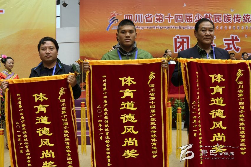 在閉幕式上的頒獎(jiǎng)儀式上,本屆組委會(huì)分別頒發(fā)了本屆民運(yùn)會(huì)各競(jìng)賽項(xiàng)目團(tuán)體一等獎(jiǎng)、開(kāi)幕式大型文體表演特等獎(jiǎng)、體育道德風(fēng)尚獎(jiǎng)。我州代表團(tuán)獲本屆民運(yùn)會(huì)表演項(xiàng)目一等獎(jiǎng)、體育道德風(fēng)尚獎(jiǎng)。據(jù)悉,獲得體育道德風(fēng)尚獎(jiǎng)的還有宜賓市代表團(tuán)、阿壩藏族羌族自治州代表隊(duì)、涼山彝族自治州代表隊(duì)、成都市代表團(tuán)、攀枝花市代表團(tuán)、瀘州市代表團(tuán)、綿陽(yáng)市代表團(tuán)、樂(lè)山市代表團(tuán)、廣安市代表團(tuán)、達(dá)州市代表團(tuán)、雅安市代表團(tuán)、西南民族大學(xué)代表團(tuán)、成都體育學(xué)院代表團(tuán)。
