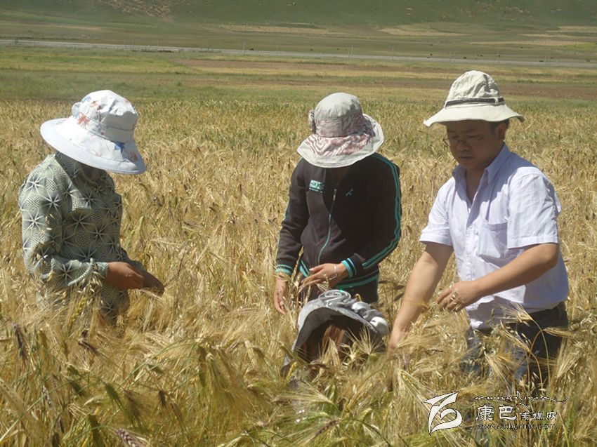 甘孜縣援藏干部人才下鄉估測青稞產量。