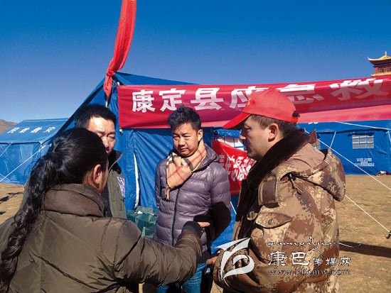 11月25日,袁雅遜(右二)在震中康定縣木雅祖慶學校勘查災情。張漆聯攝