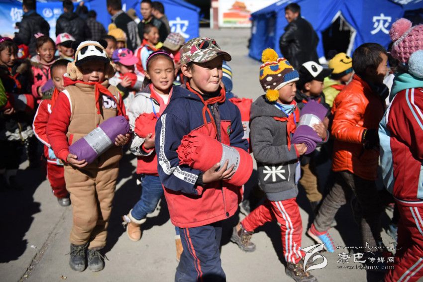 據學校負責人扎西老師介紹,地震時正是周六,學生放假不在學校,無人員傷亡,12月1日才復課。現在學校已有15間板房,21頂帳篷,能夠保障全校820名學生、391名住校生的正常上課和住宿,用水也恢復正常。