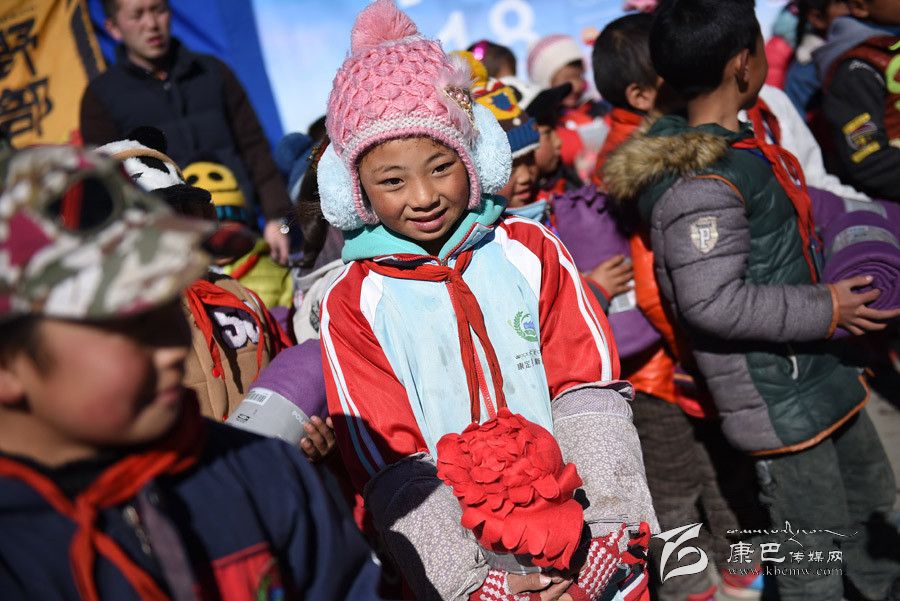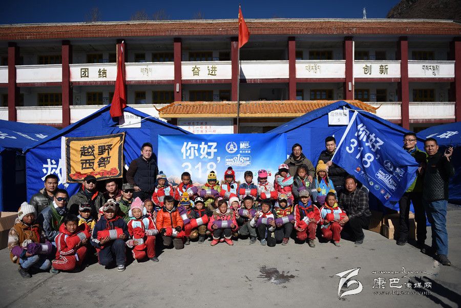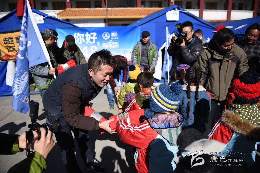 課間,“你好,318”全媒體行隊員代表新華網向孩子們捐贈了100條紅紫兩色的防寒毛毯。康定縣委宣傳部長毛宇向新華網表達了感謝,并祝此次活動一路順利。